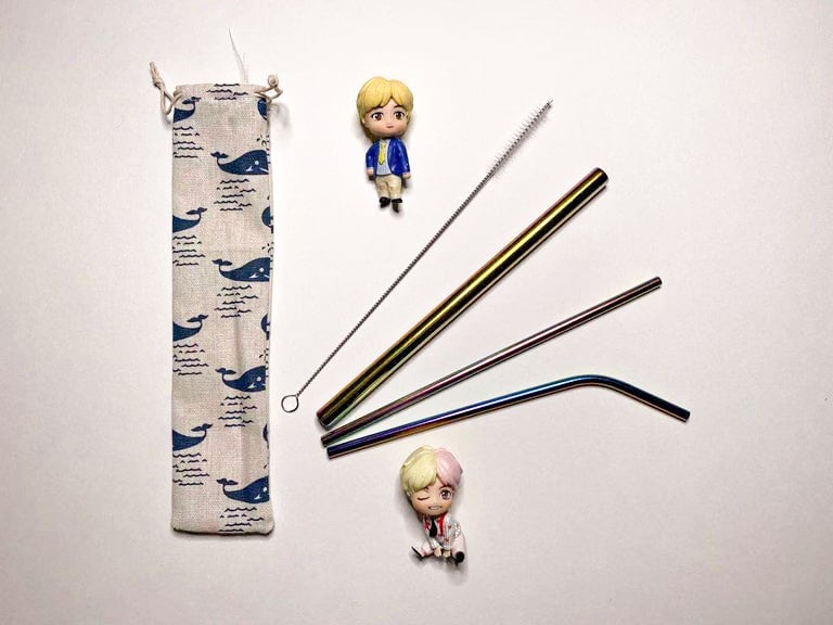 3 Holographic Straws wrapped lovingly in a "Kore" pouch.